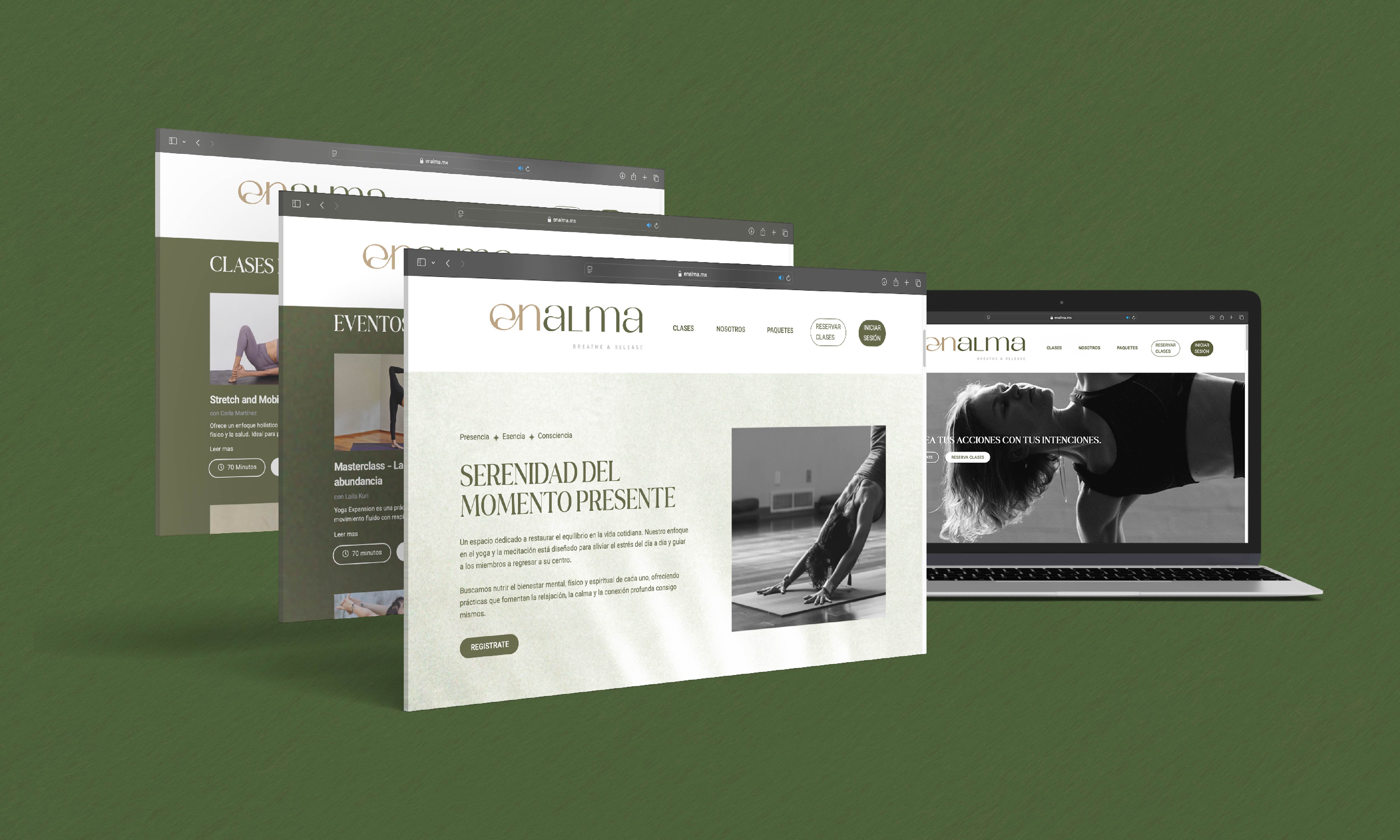 El sitio web de Enalma fue creado con un enfoque en la usabilidad y estética, combinando una interfaz limpia con navegación intuitiva. Cada sección fue diseñada para transmitir la tranquilidad y el equilibrio del estudio, facilitando a los visitantes el acceso a información sobre clases y servicios.