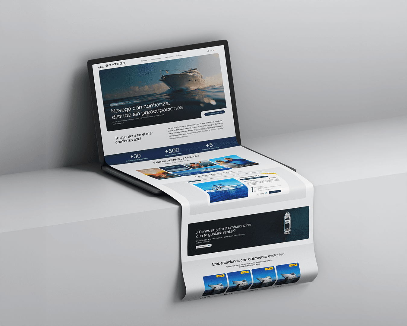 Boat2Go es la empresa líder en renta de yates en Progreso, Yucatán, con una flota que abarca desde lujosos yates de 48 ft hasta catamaranes familiares. boat2go.mx Para reflejar ese liderazgo digitalmente, construimos un sitio web “mobile-first” y un back-office robusto que permite al equipo gestionar precios, disponibilidad y contenido visual de más de 20 embarcaciones en tiempo real. instagram.com