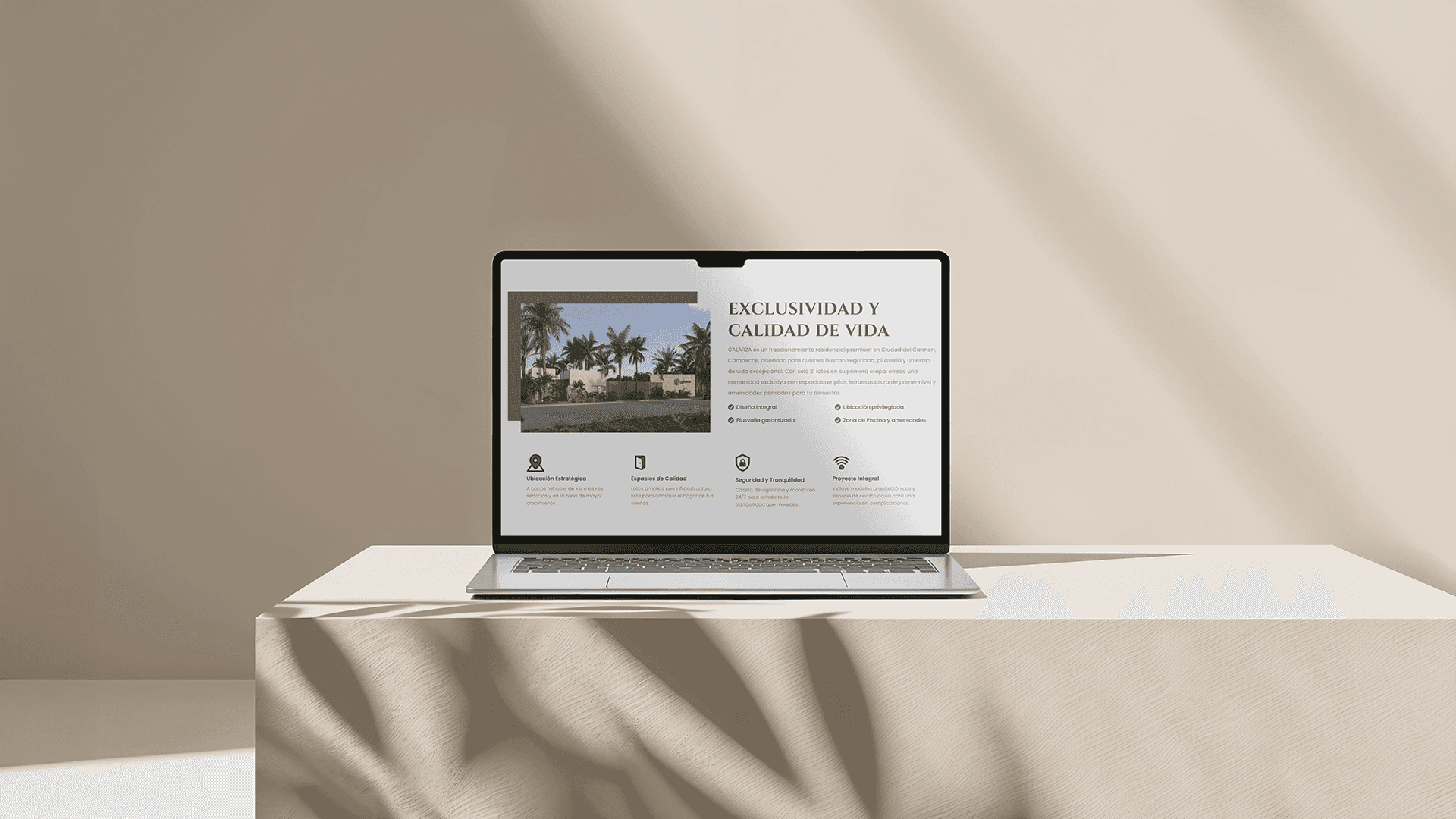 Nuestro reto fue transformar esa propuesta de valor en una landing page envolvente que mostrara renders, master plan y amenidades, pero que también convirtiera visitantes en prospectos mediante un cotizador inmediato y flujos de contacto vía WhatsApp. El resultado: un sitio veloz, claro y escalable que posiciona a Galarza como la opción premium de la región.
